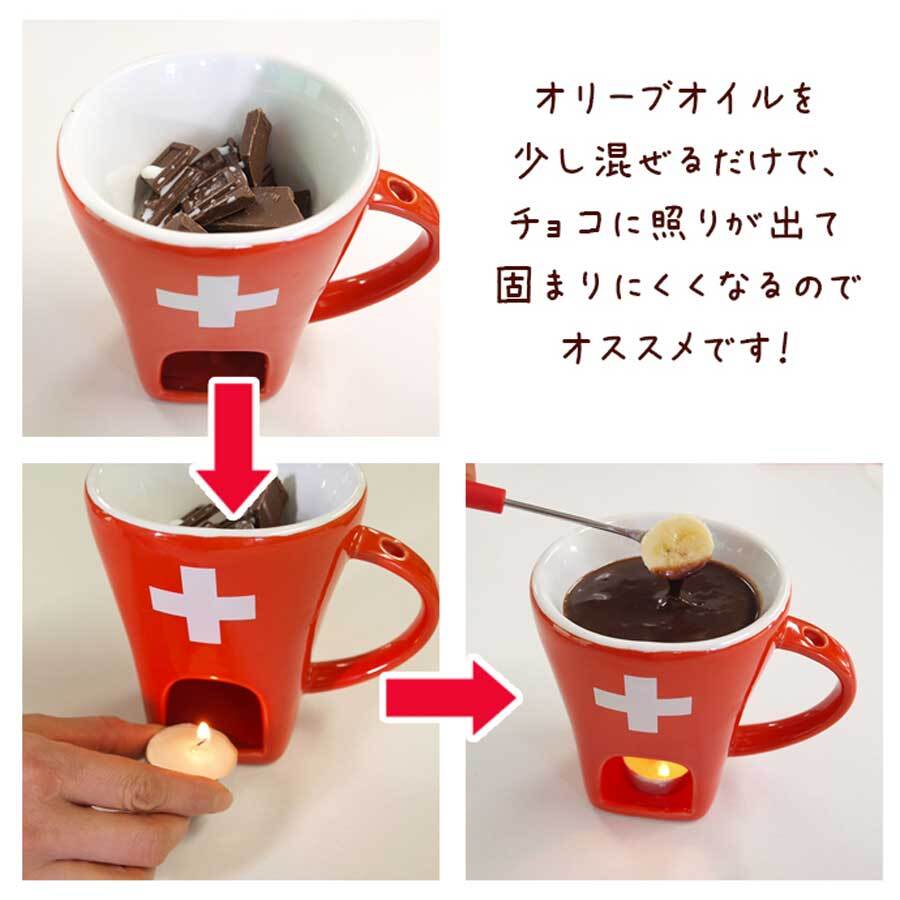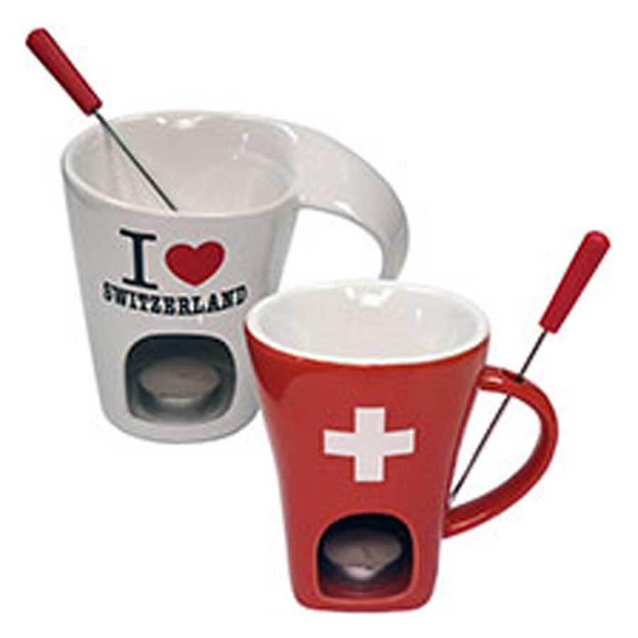 楽しい食卓を彩る、スイスの可愛いアイテム 「フォンデュマグカップ赤 ”スイス柄”1個」 スイスヌベール社のチーズ調理器 「Fondue Mag Red ”Swiss”」 チョコレートフォンデュ・チーズフォンデュ・バーニャカウダ
