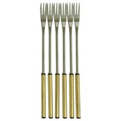 フォンデュフォーク6本セット「ゴールド ステンレス ハンドル」Gold Stainless Steel Handle3本歯フォークチーズフォンデュ オイルフォンデュ フォンデュブルギニョン ミートフォンデュ フォンデュシノワーズ